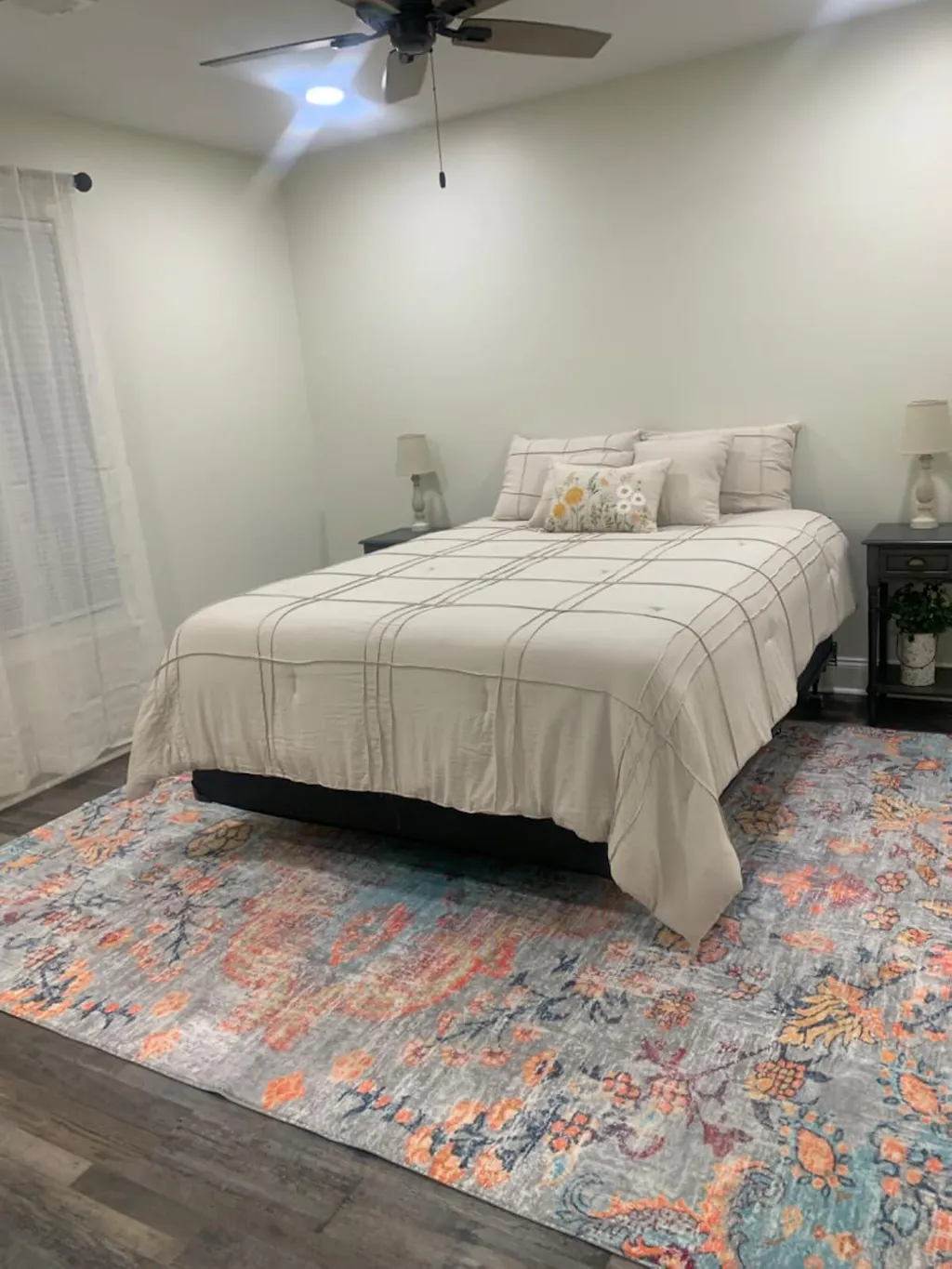This rug, christened "Aurora", weaves a dance of sunrise hues across a subtle gray canvas, echoing the serene beauty of a dawn sky.