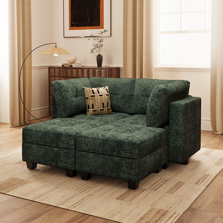 Tesso 4 Seats + 4 Sides Modular Sleeper Chenille Tufted Sofa with Storage Seat