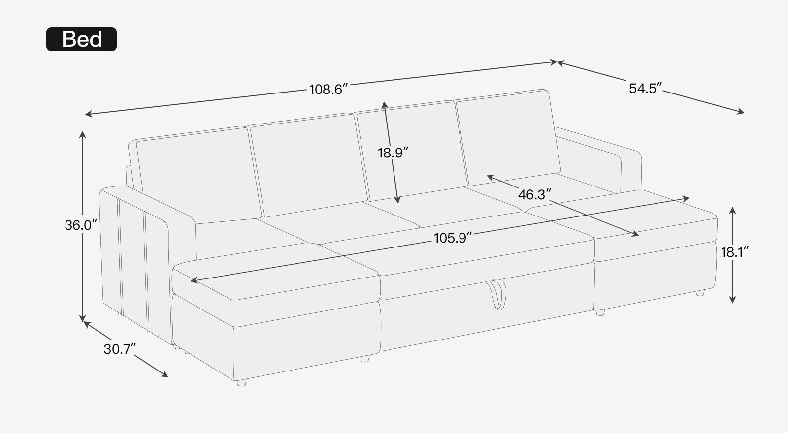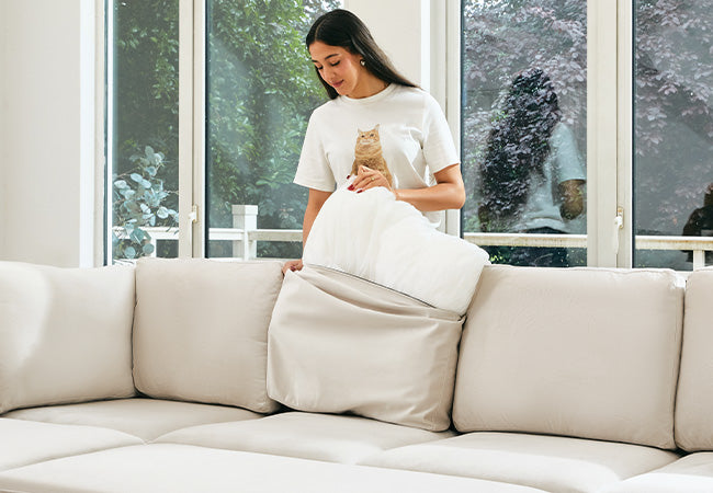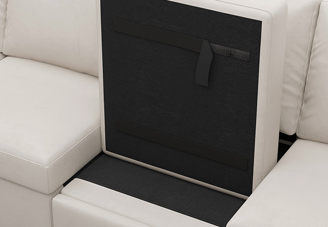 This modular sofa features an innovative pull-out sleeper sectional module that easily converts it into a comfortable sofa bed for guests or a perfect spot for movie nights and play with your kids, making it a versatile and practical addition to any home