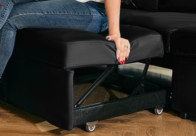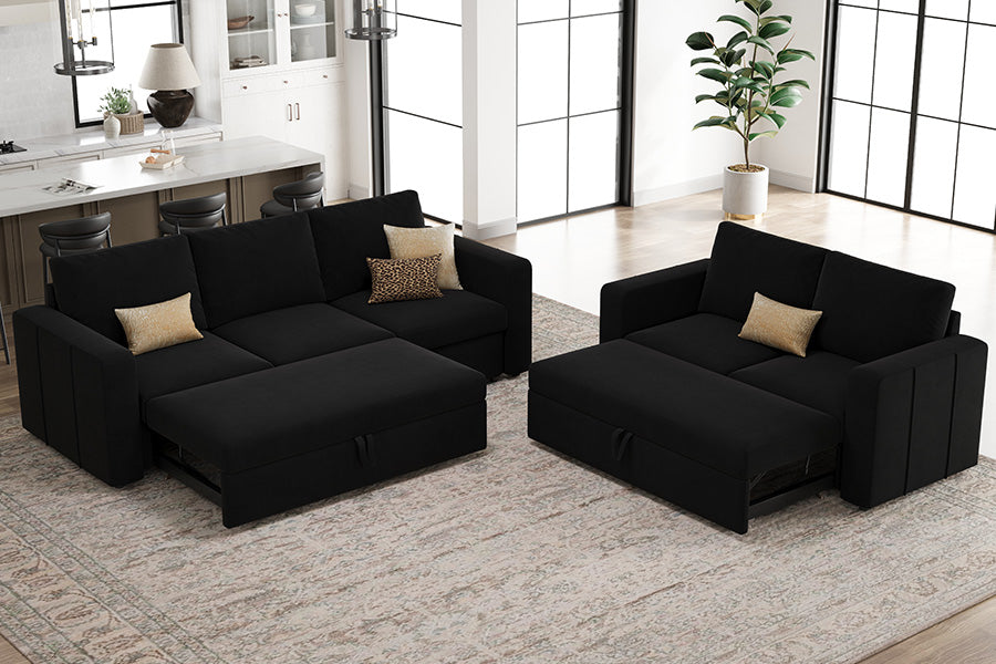 Elva 4 Seats Modular Velvet Pull-out Sleeper Sofa with Storage Ottoman