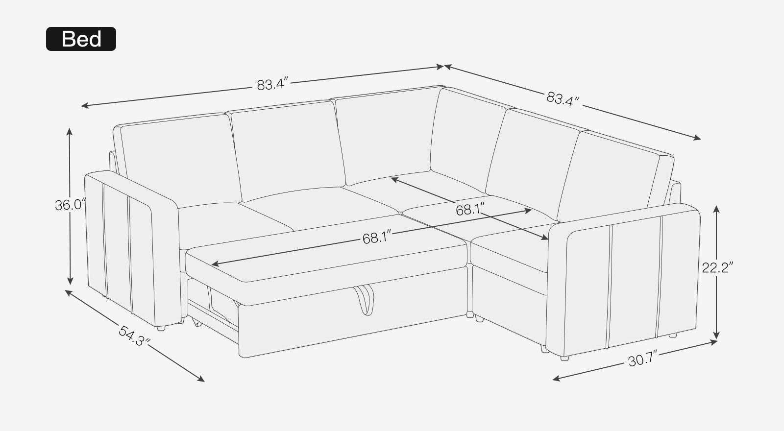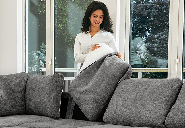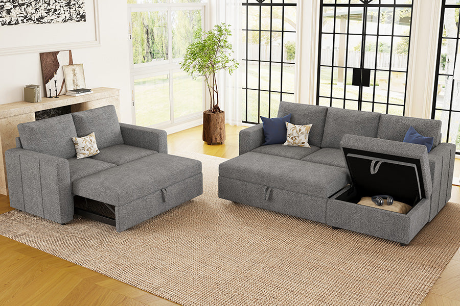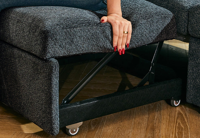 This modular sofa features an innovative pull-out sleeper sectional module that easily converts it into a comfortable sofa bed for guests or a perfect spot for movie nights and play with your kids, making it a versatile and practical addition to any home