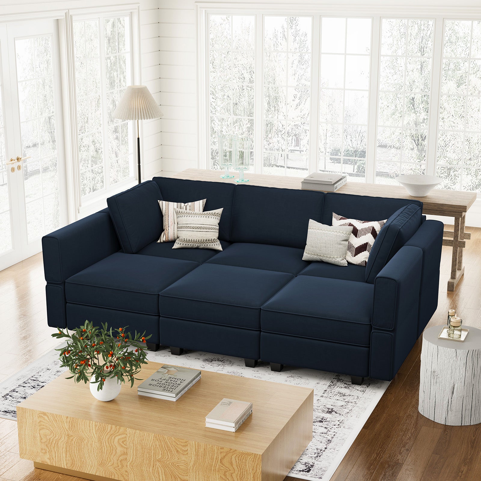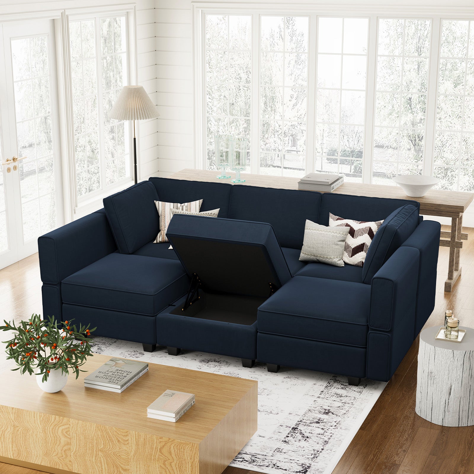 Soforia 6 Seats + 7 Sides Modular Velvet Sleeper Sofa with Storage Seat
