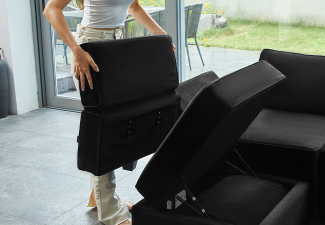 Keep your living area tidy and organized with our sofa's generous storage compartments. Perfect for stowing away blankets, pillows, and other essentials, it's a stylish solution for small spaces.