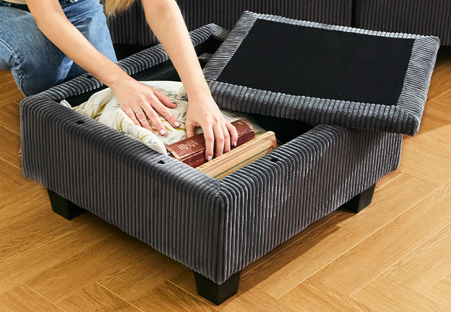 Emry 3 Seats + 5 Sides Modular Corduroy Sofa with Storage Seat