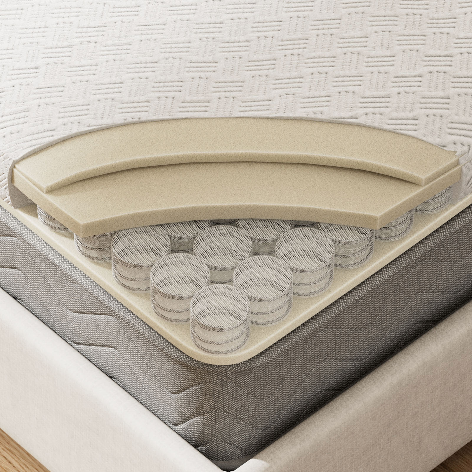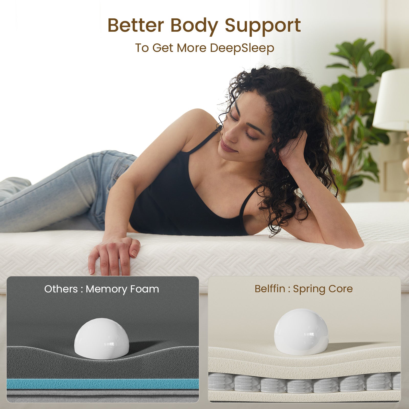 Our Spring foam mattress topper is a perfect addition to your mattress. High-Density Support Foam and 1.2 inch mini Spring Core is better support and resilience than memory foam. Non-Temperature-Sensitive Memory Foam offers soft.