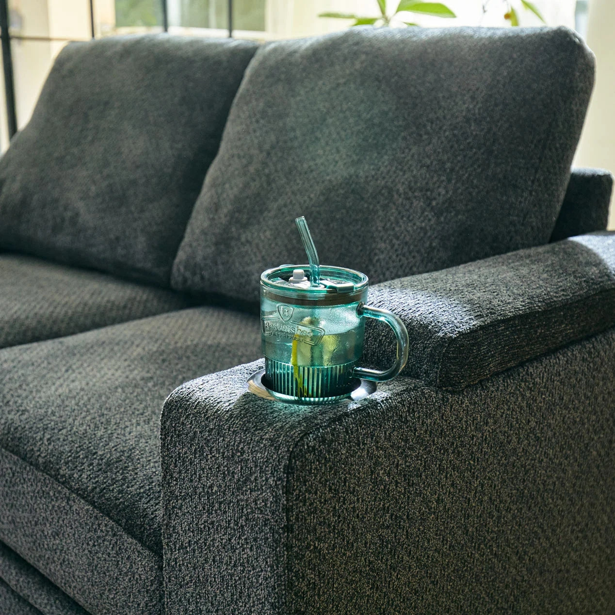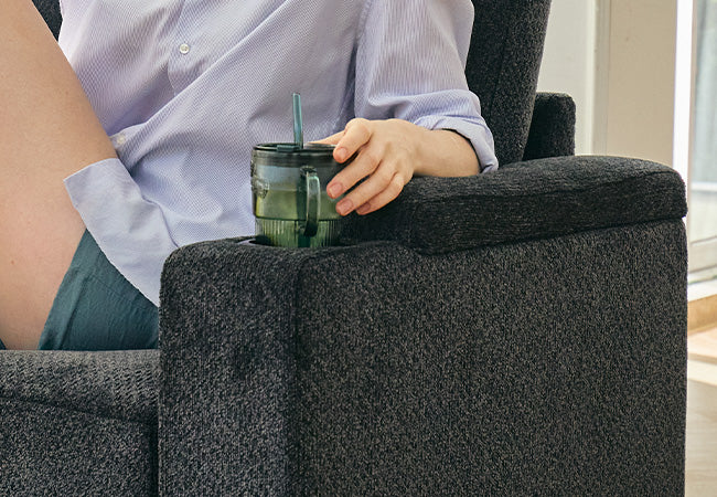 Features 3.35" wide, 2.35" deep armrestcup holders for easy access to drinks.