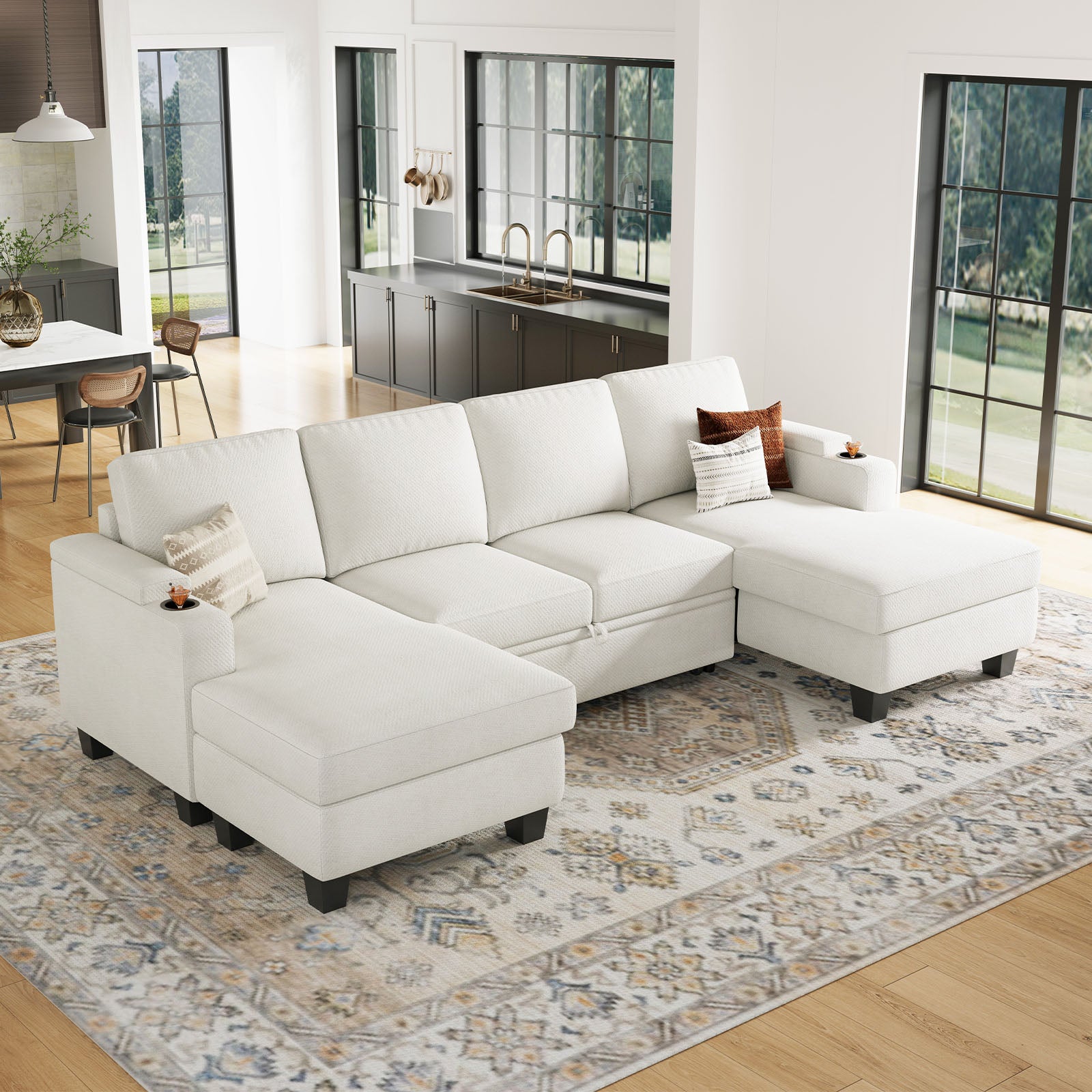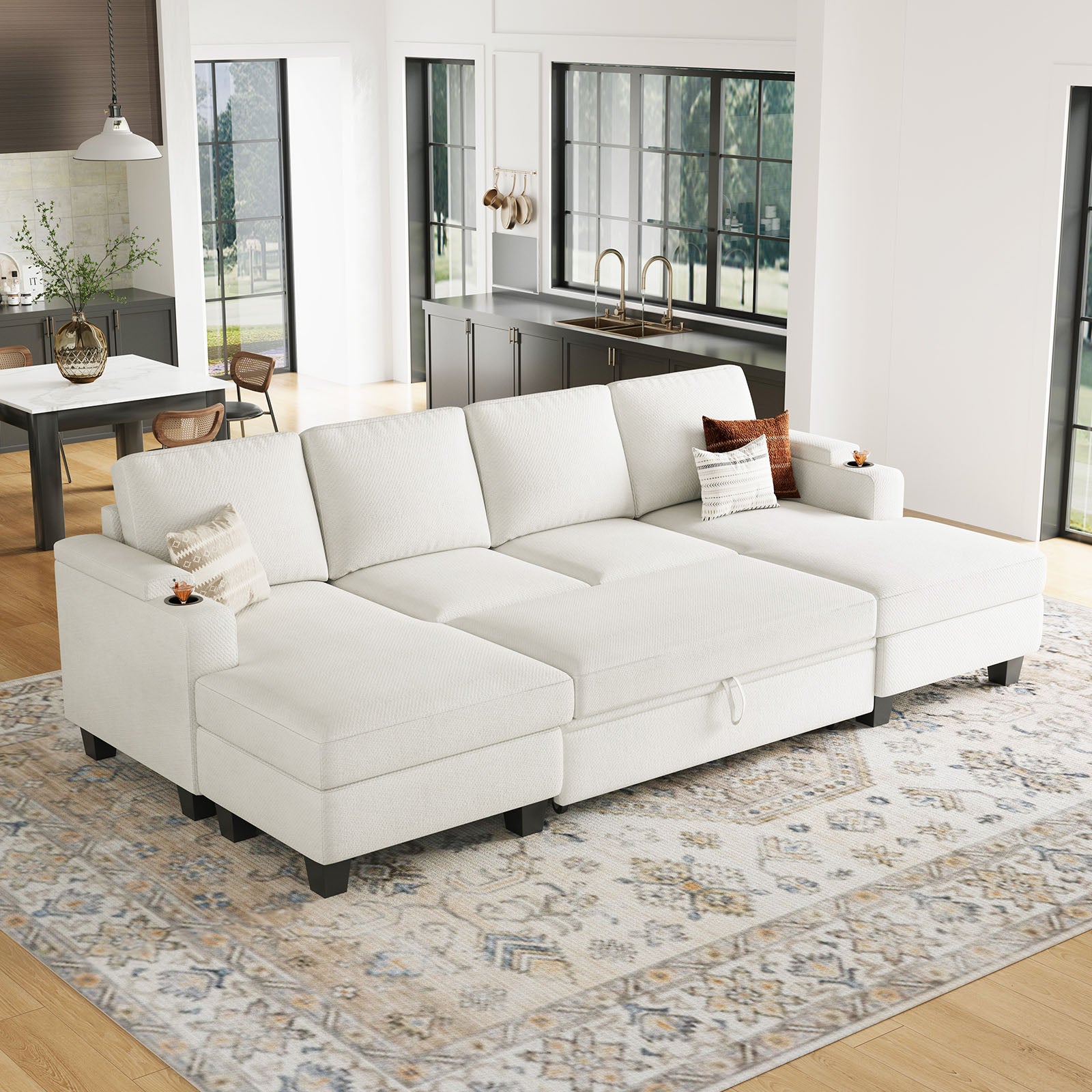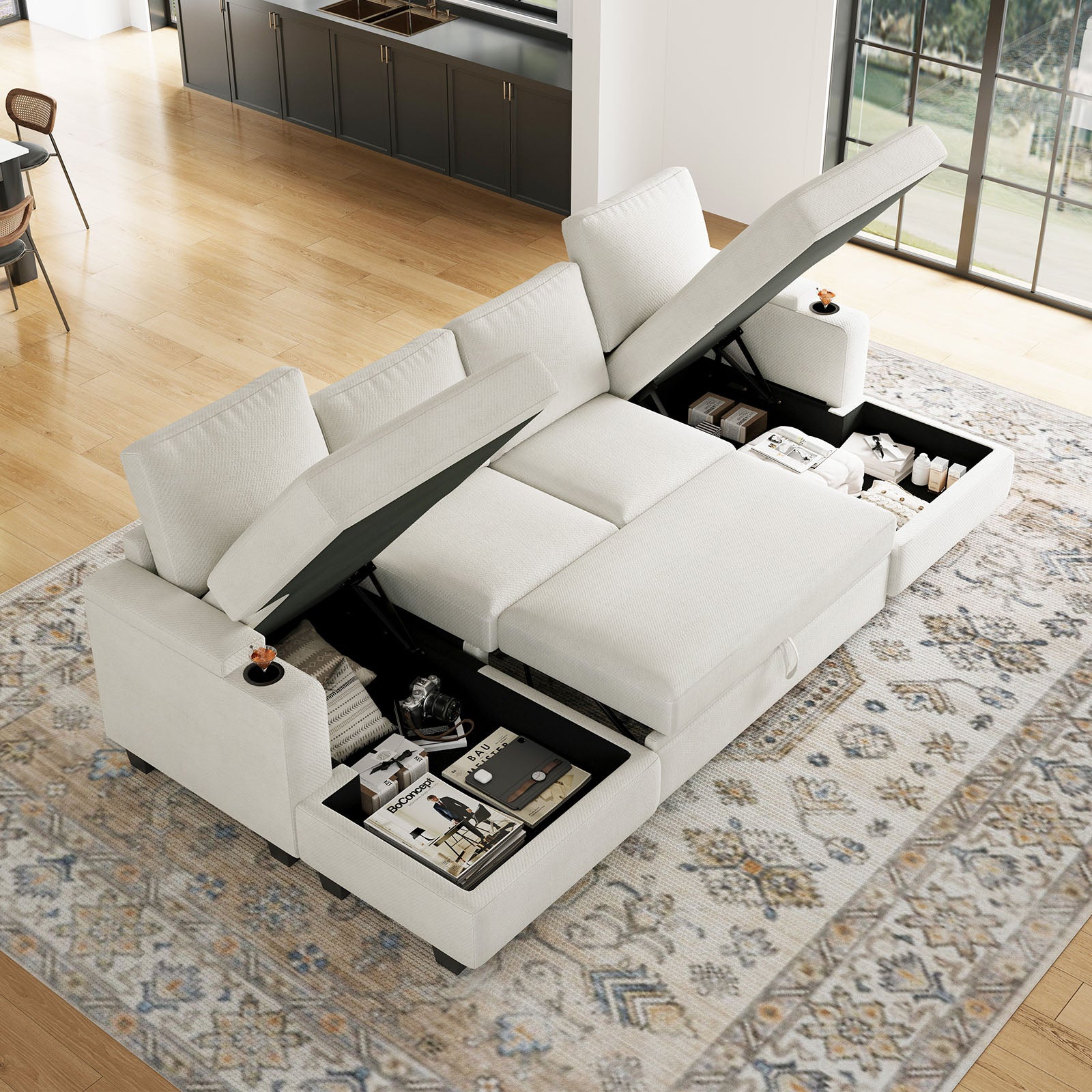 Vesper Modular 4 Seater Modular Chenille Pull-out Sleeper Sofa with Storage Chaises