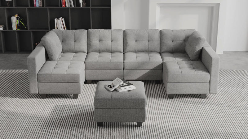 Our middle module seat for modular sectional sofa couch is made with a sturdy solid wood frame ,filled with high-density sponge and wrapped in 100% plush woven fabric, designed for long and lasting use.