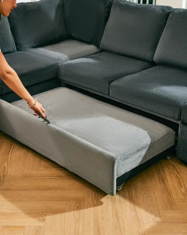 The internal structure features a sturdy blend of solid wood and engineered panels, providing a durable and stable foundation. Designed to withstand daily use, jumping kids, and spontaneous sleepovers, it ensures your sofa stays strong and secure for years.