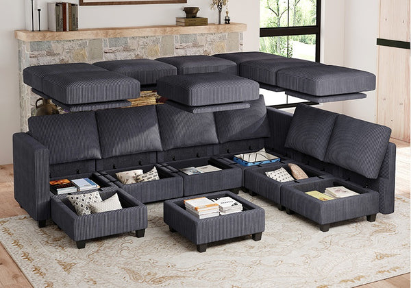 Premium wide-ribbed corduroy is highly durable and scratch-resistant, lasting longer than many ordinary fabric sofas. This sleeper sofa sectional fabric effectively resists everyday friction and even minor scratches from pets, providing peace of mind for pet-owning families. However, please note that sharp barbs from dogs' and cats' claws can still snag or tear the fabric, so regular trimming of cat claws is recommended to maintain the sofa's optimal condition.