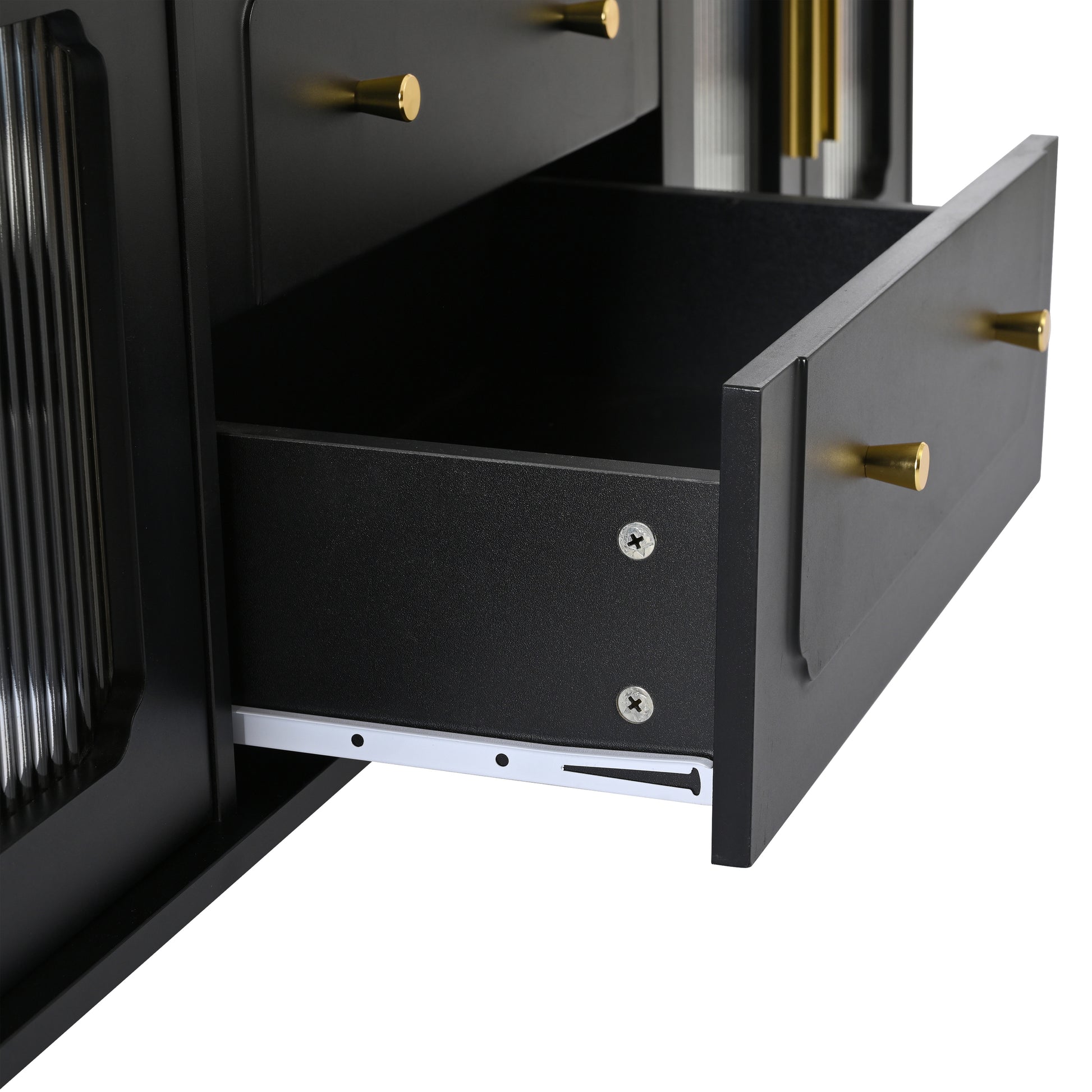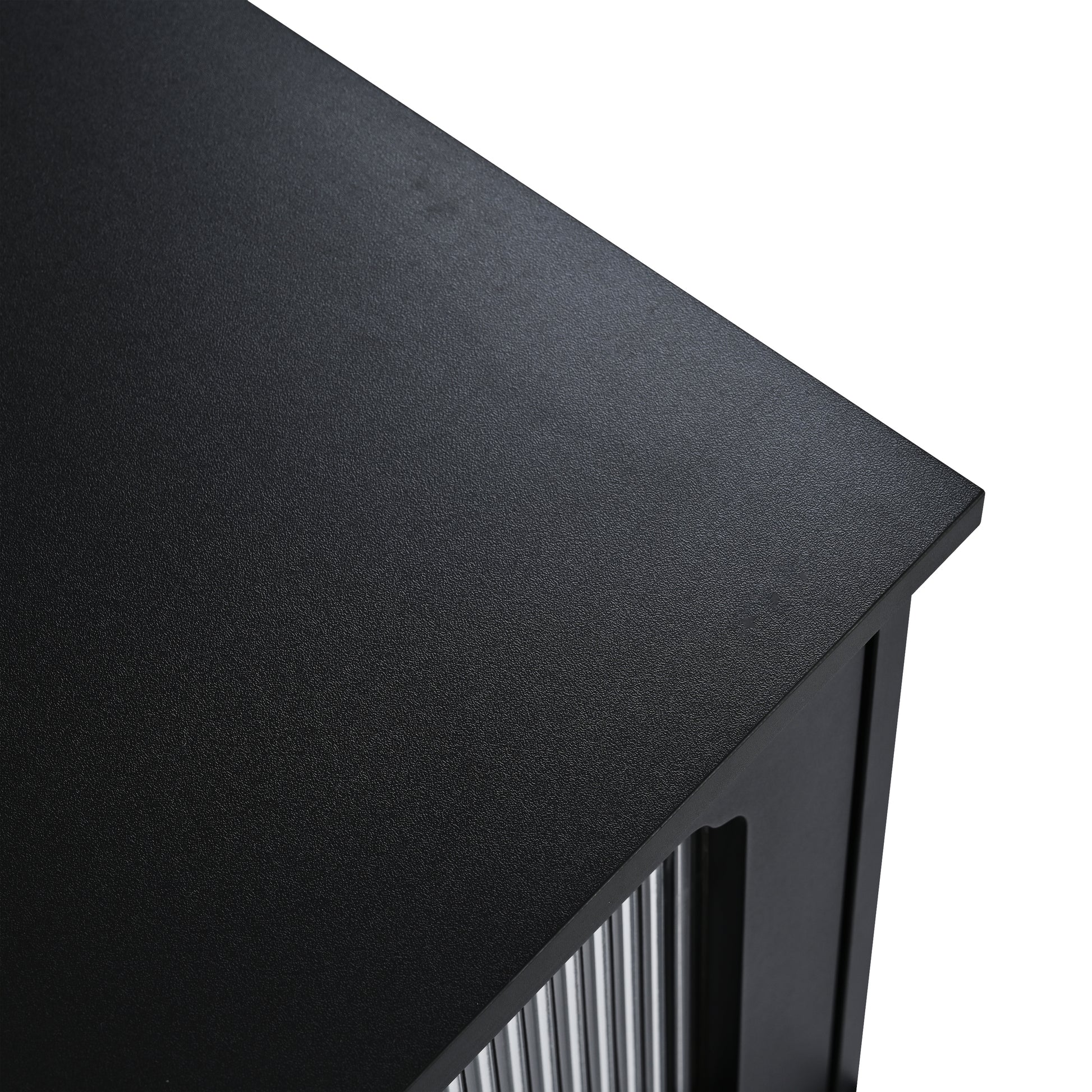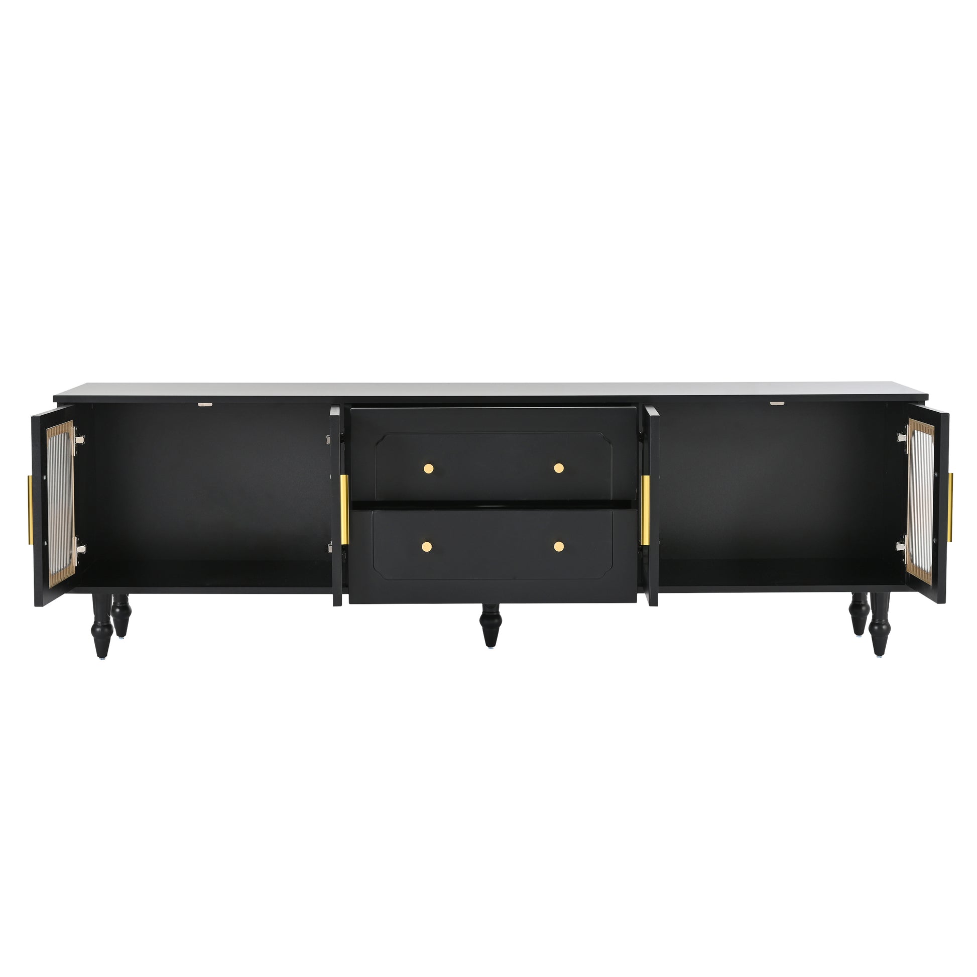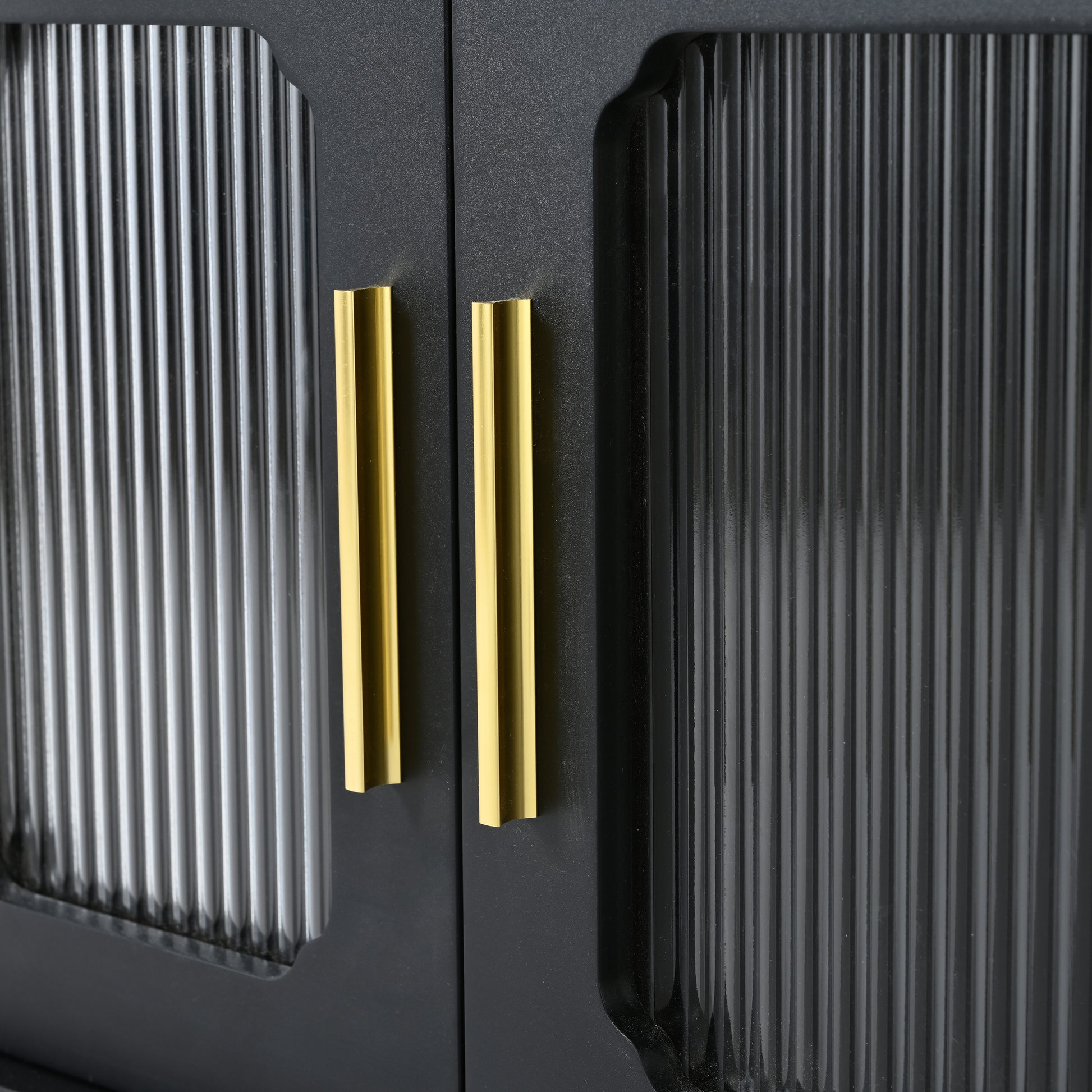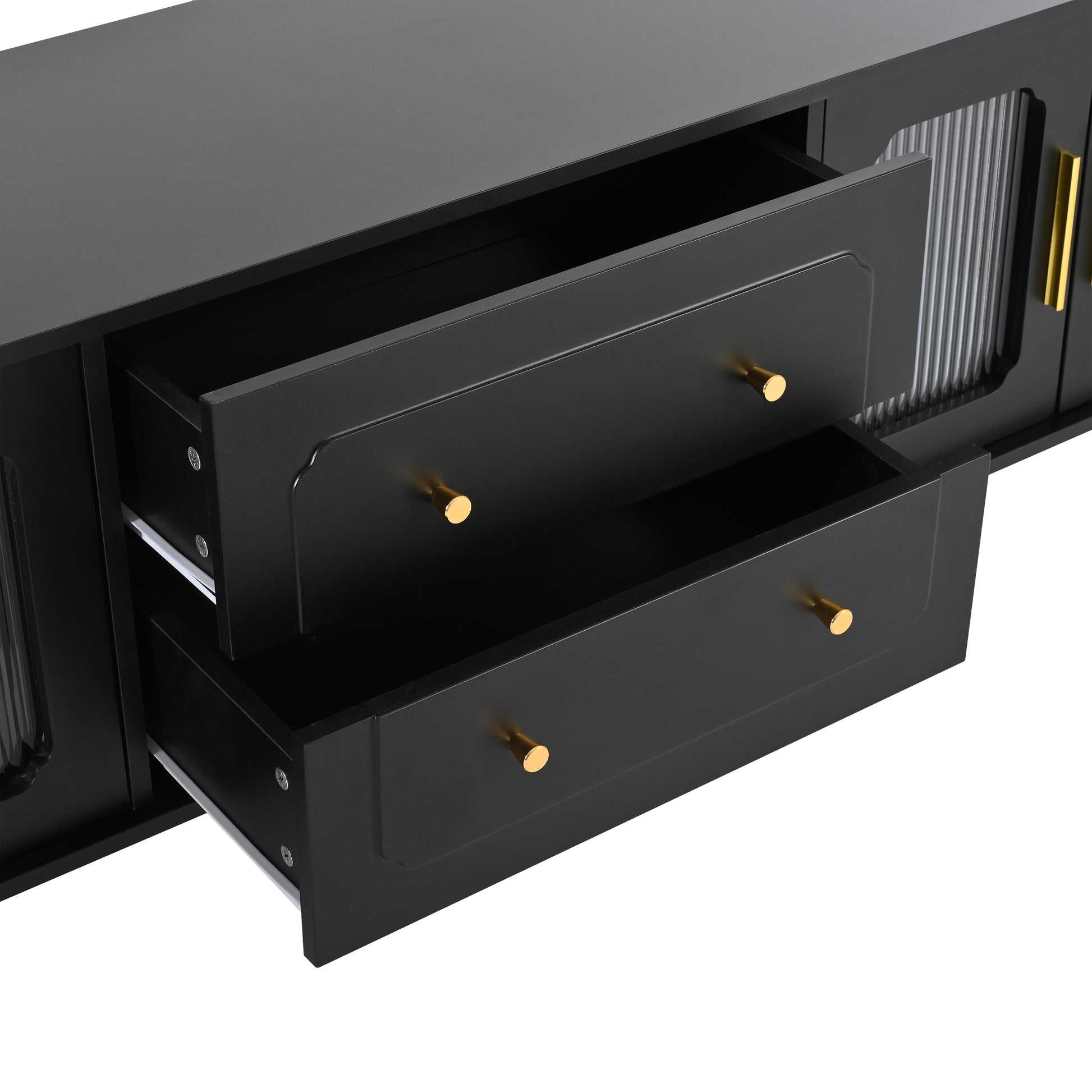 This TV stand boasts a sleek and exquisite appearance aesthetic, featuring crafted fluted glass doors and unique gourd-shaped table legs. This kind of door allows natural light to filter through, and can help to enhance spatial openness.