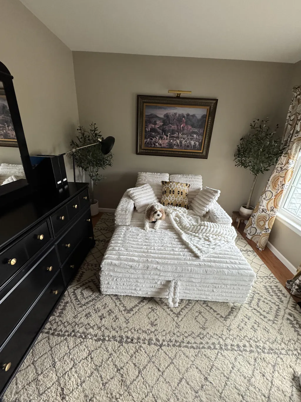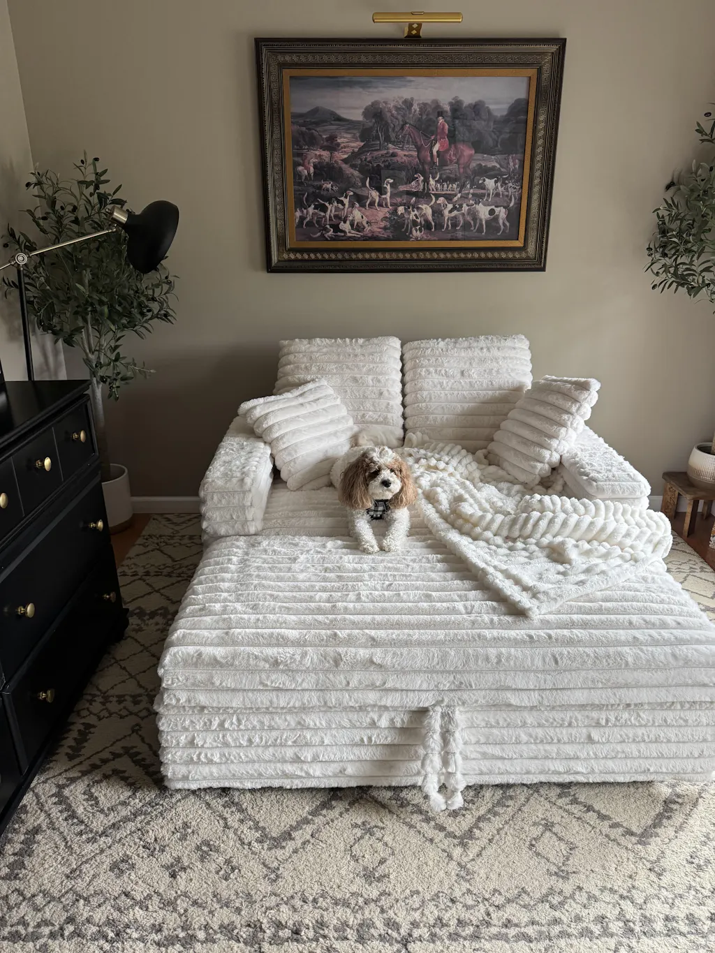 This sofa features an oversized seat, an adjustable backrest, and cloud-soft fabric, ensuring comfort, intimacy, and complete relaxation for everyone, regardless of size, whether human or pet.