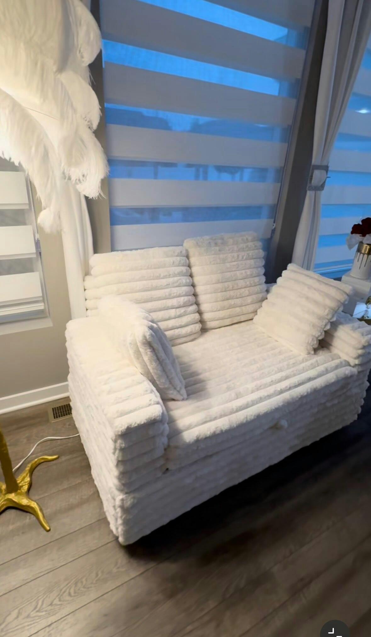 Nido faux rabbit fur loveseat's high-resilience foam provides a soft touch and stable support, gently wrapping around your body and adapting to your natural sitting posture, immersing you in the soft and comfortable rebound cushion.