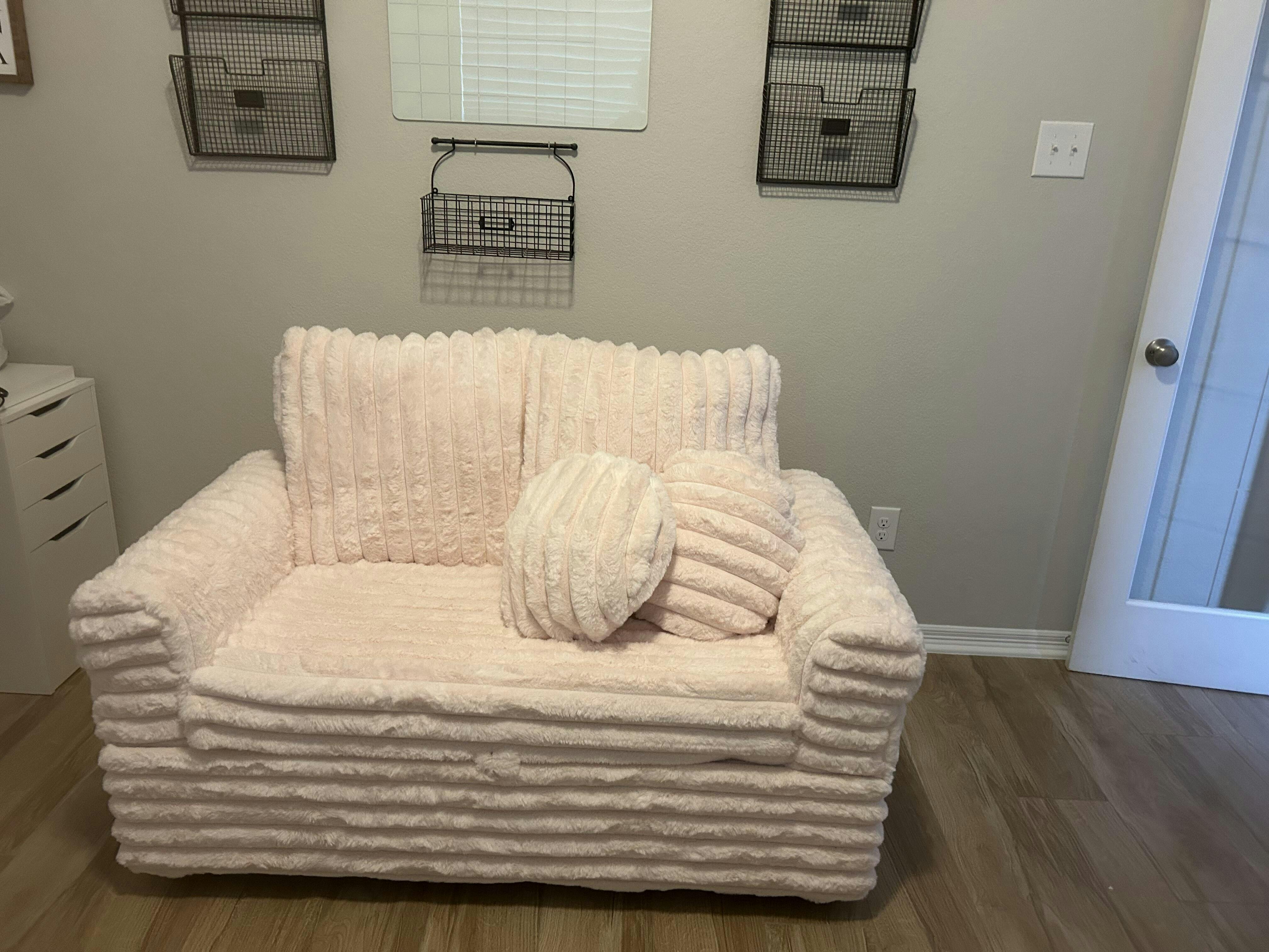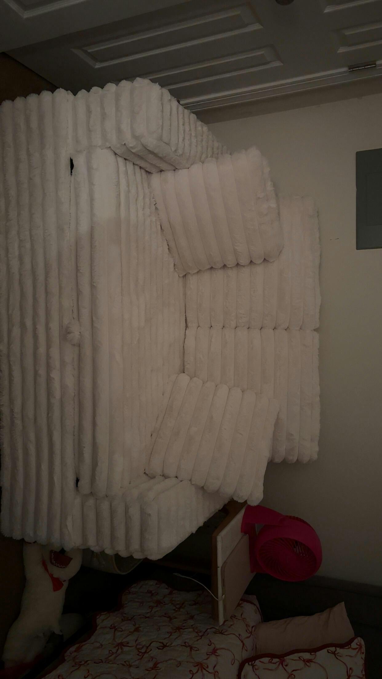 The Nido pull-out loveseat sofa is made of soft faux rabbit fur corduroy, whose delicate texture gives the sofa a stylish look while creating an incredibly warm and comfortable seating experience. The rabbit fur fabric is durable and soft to the touch; with proper care, it can maintain its fluffy appearance, making it a luxurious choice for those who value both comfort and elegance.