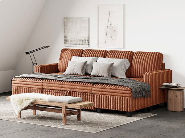 This modular sectional sleeper features oversized, comfortable, and soft cushions, providing support whether you're sitting or lying down. It's perfect for relaxing in the living room, enjoying a drink while experiencing convenience and comfort, and enhancing your leisure experience.