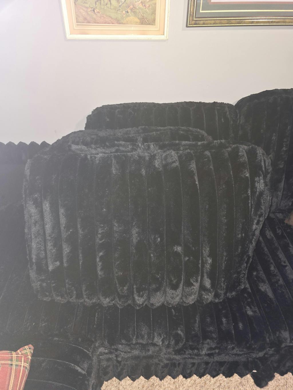 The deep seat design enhances relaxation and comfort while maintaining a sophisticated and luxurious look, and is easy to clean and maintain. Designed for ultimate relaxation, it provides ample space for lying down, relaxing, napping, or reclining. This faux rabbit fur corduroy sofa perfectly blends comfort and versatile style, making it ideal for any living space.
