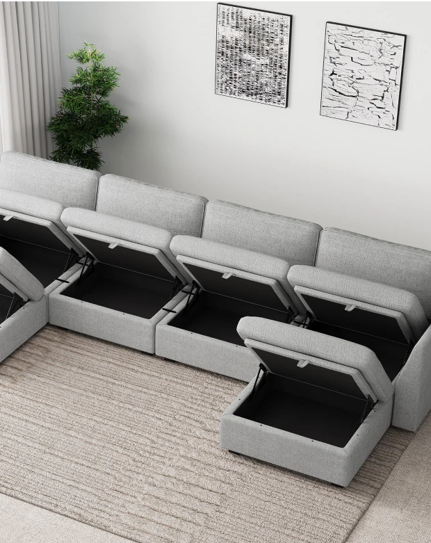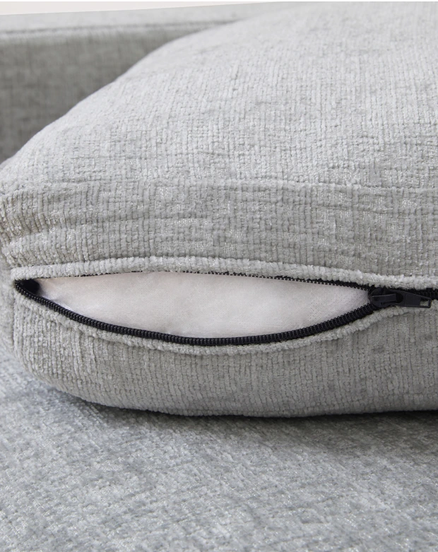 Thara blends modular freedom with everyday practicality, wrapped in textures that invite comfort. Its adaptable modules let you arrange the perfect fit, while a smart storage base keeps life organized. Removable cushions make upkeep simple, and the chenille pillows with piped edges pair beautifully with wide corduroy for a look that feels both refined and relaxed.
