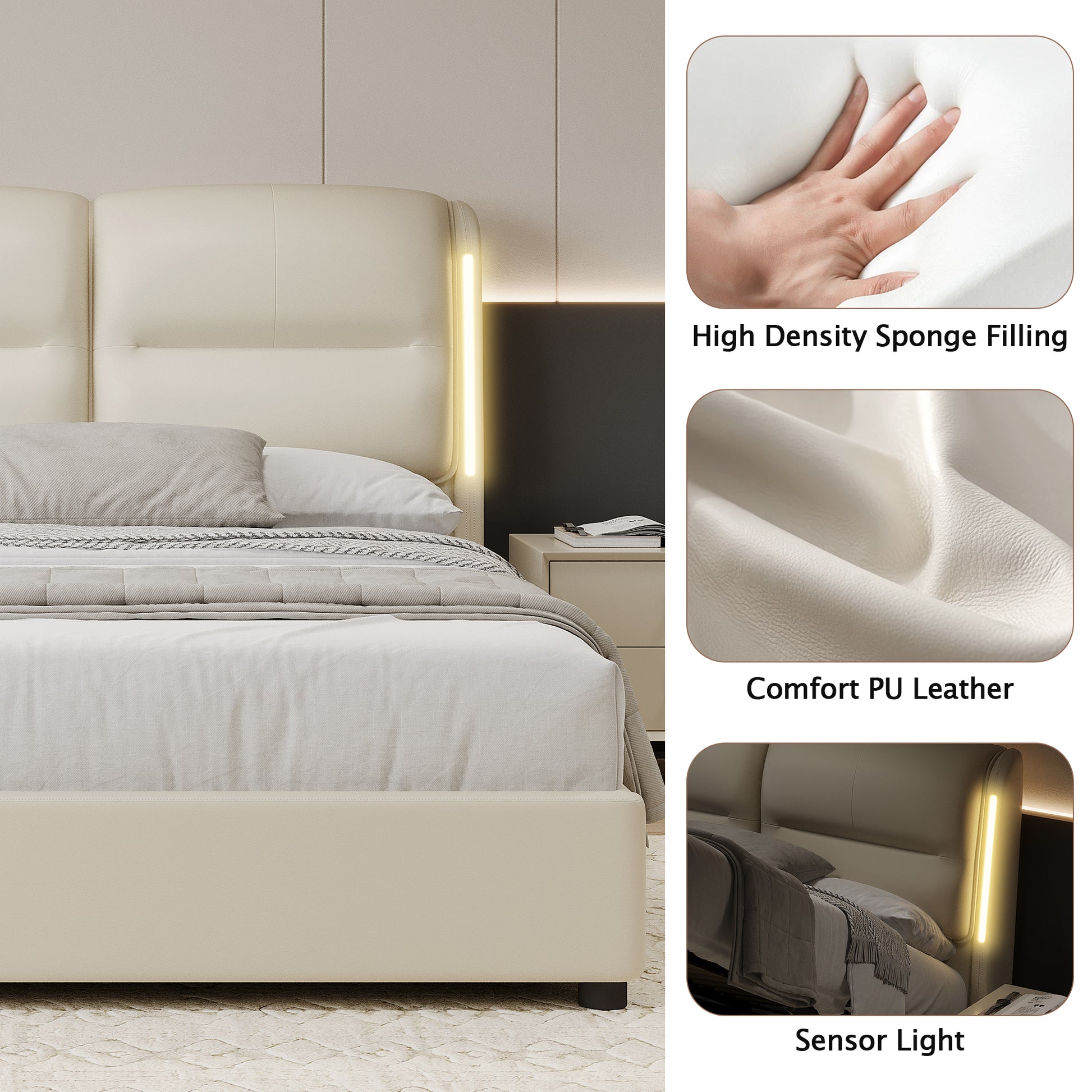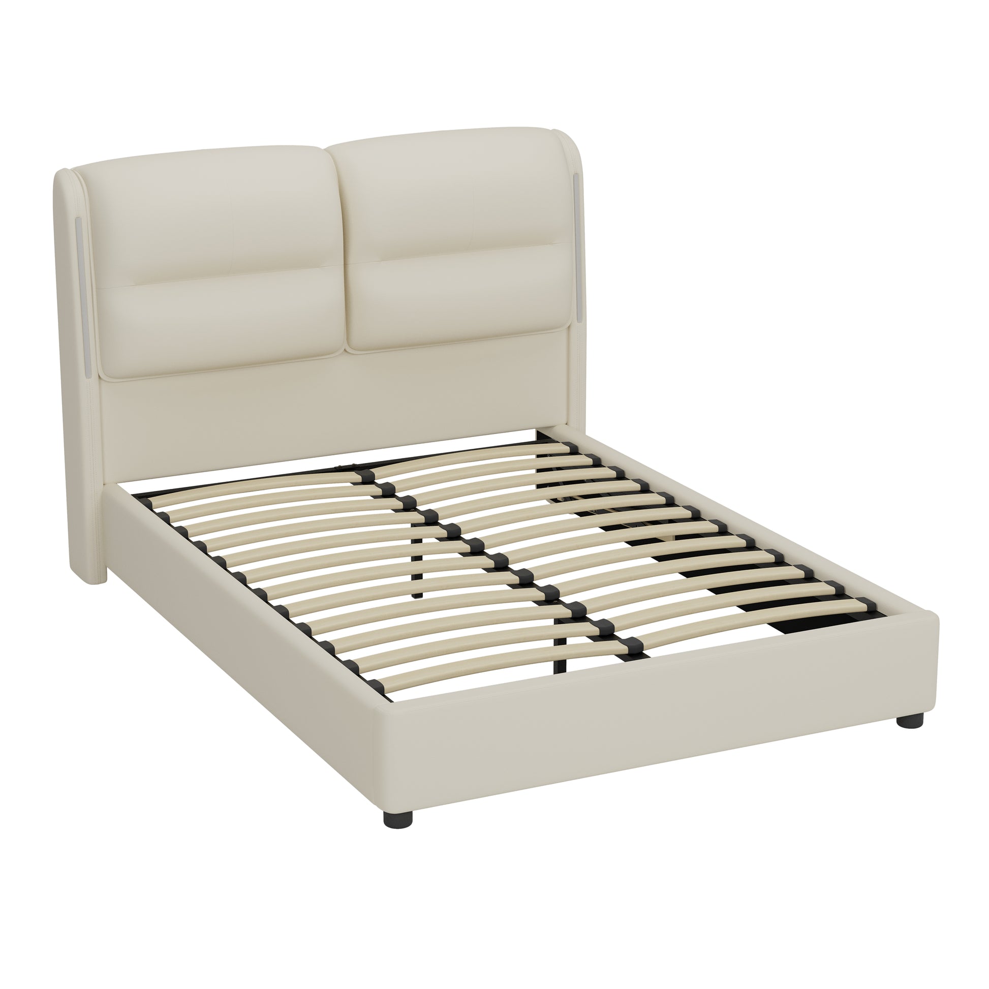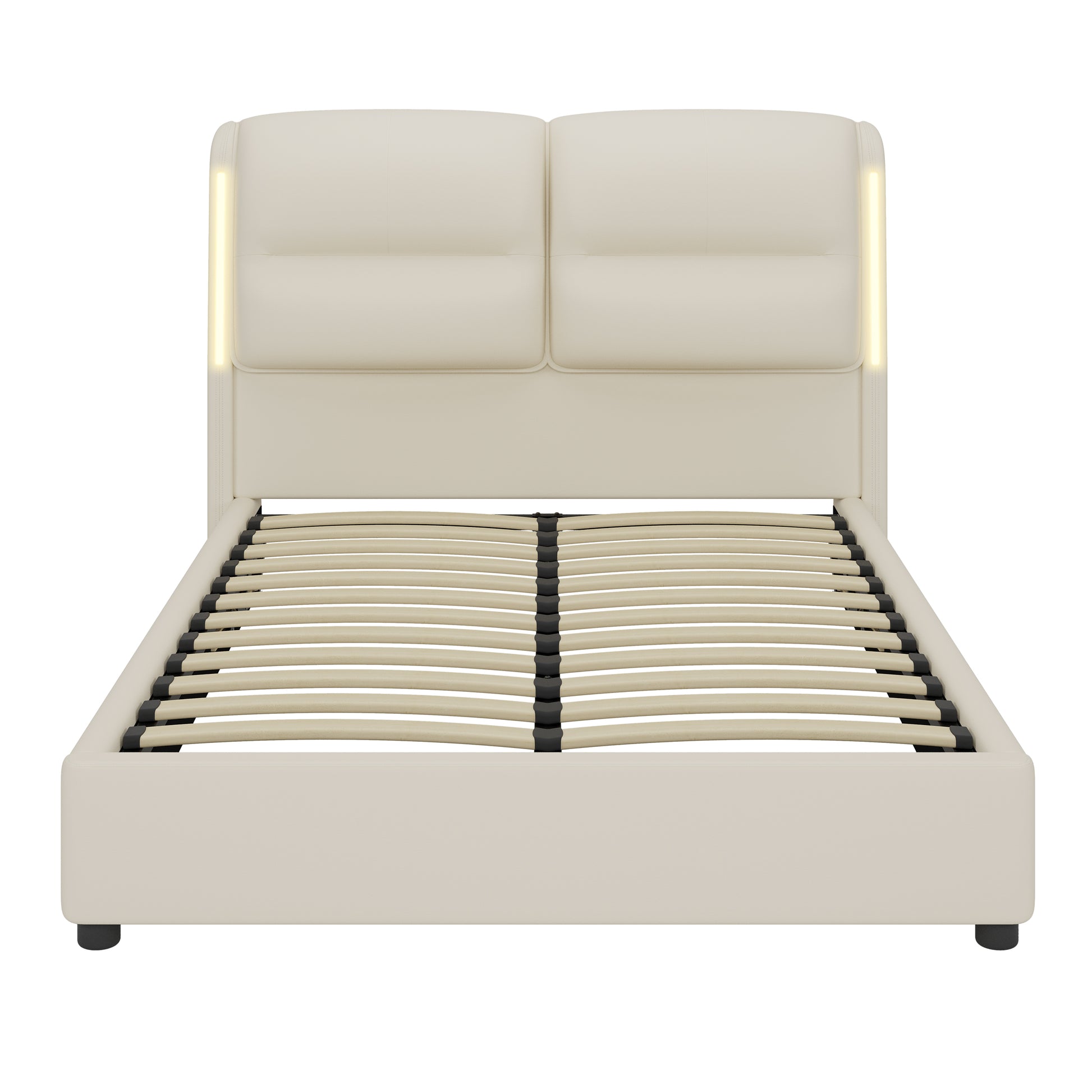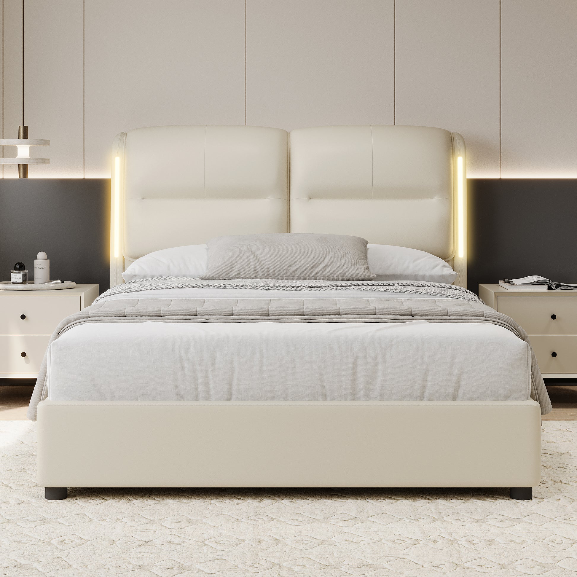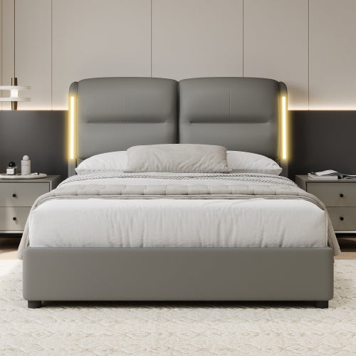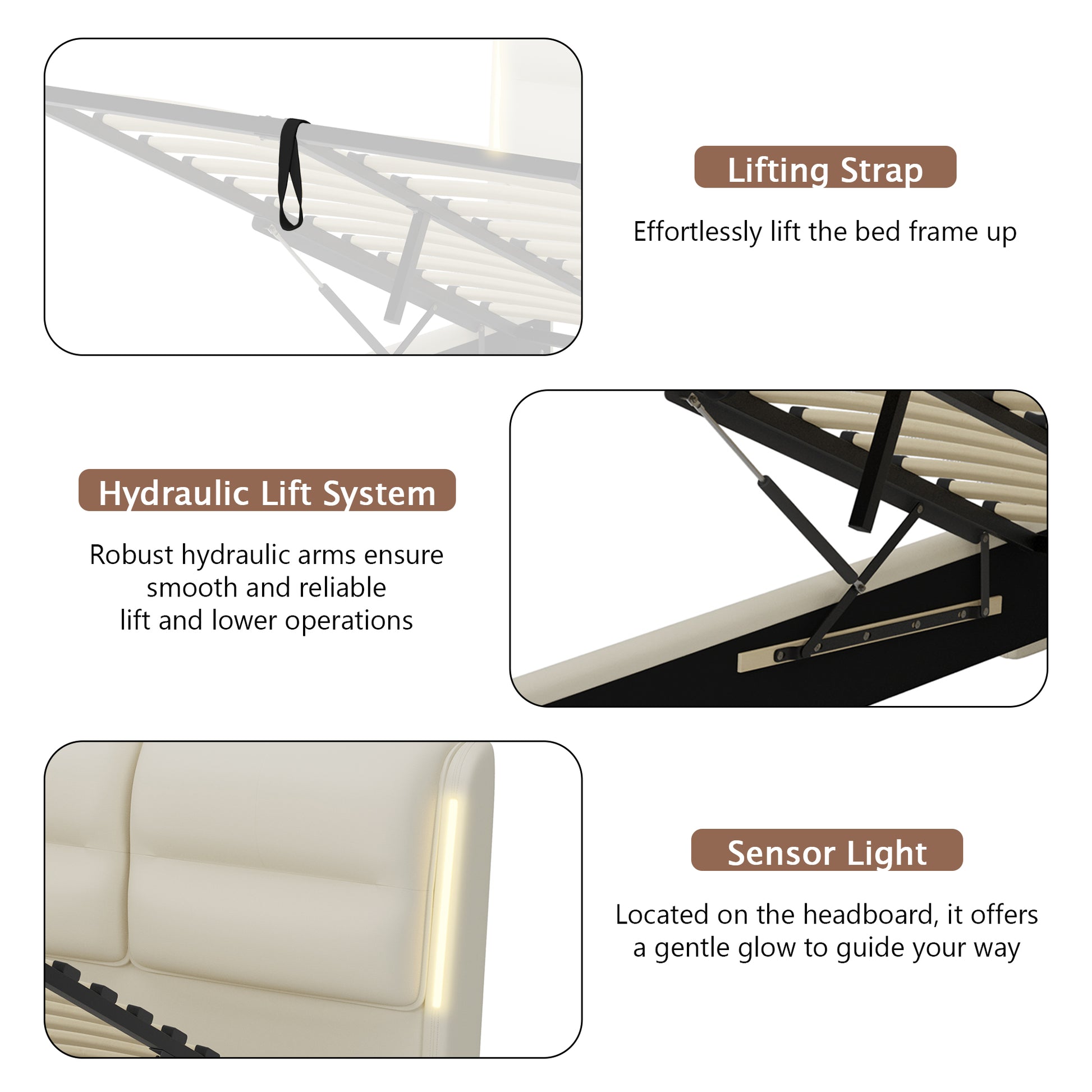 Upholstered Hydraulic Platform Bed with Lift Up Storage and LED Lights