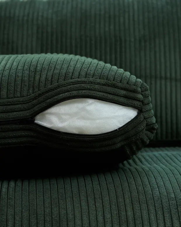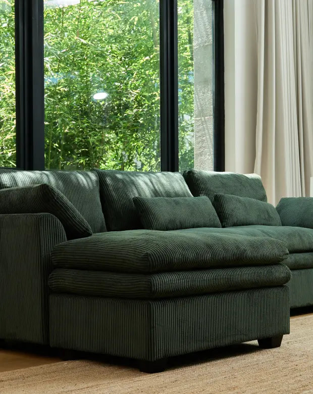 Comfort takes center stage with Vayla, where layered softness meets generous design. The double-layer cushions create instant ease, armrest wraps and lumbar pillows enhance support, and the wide-ribbed corduroy adds rich texture.