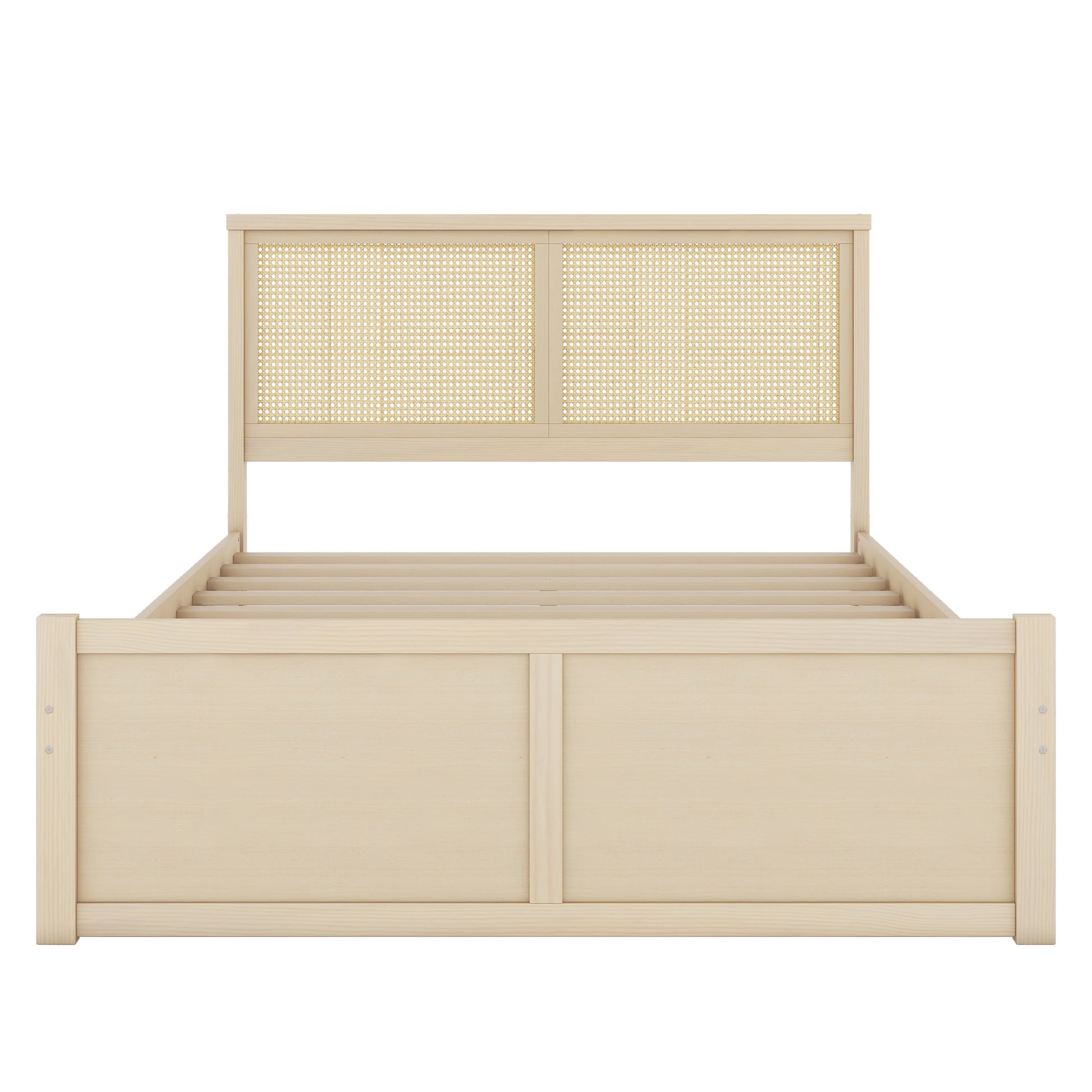Wood Storage Platform Bed with Rattan Headboard